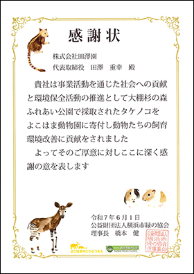 管理への一助となっております。これらの行いを評価され、公益財団法人横浜市緑の協会様より感謝状を拝受しました。